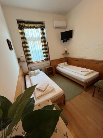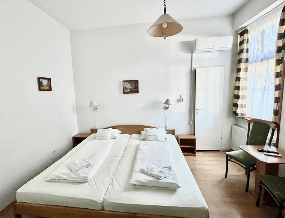 • 2-es szoba: 1 db légkondicionált 2 ágyas különálló ágyak 2 vagy 1 főre is. (a két ágy összetolható):