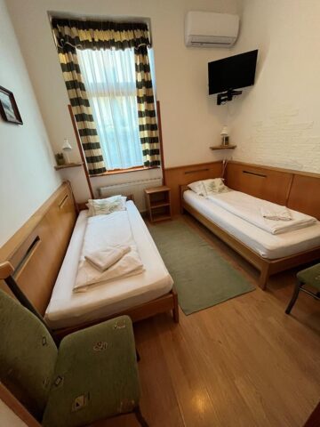 • 3-as szoba: 1 db légkondicionált 2 ágyas különálló ágyak 2 vagy 1 főre is. (a két ágy összetolható):